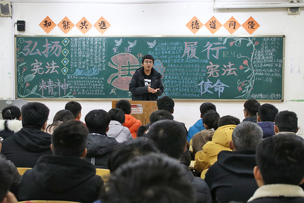 國法存心,宣規律人。為進一步提高師生法律意識,增強對憲法的認識,12月4日,在國家憲法日來臨之際,城市軌道交通系組織開展了“弘揚憲法精神,履行憲法使命”主題活動。