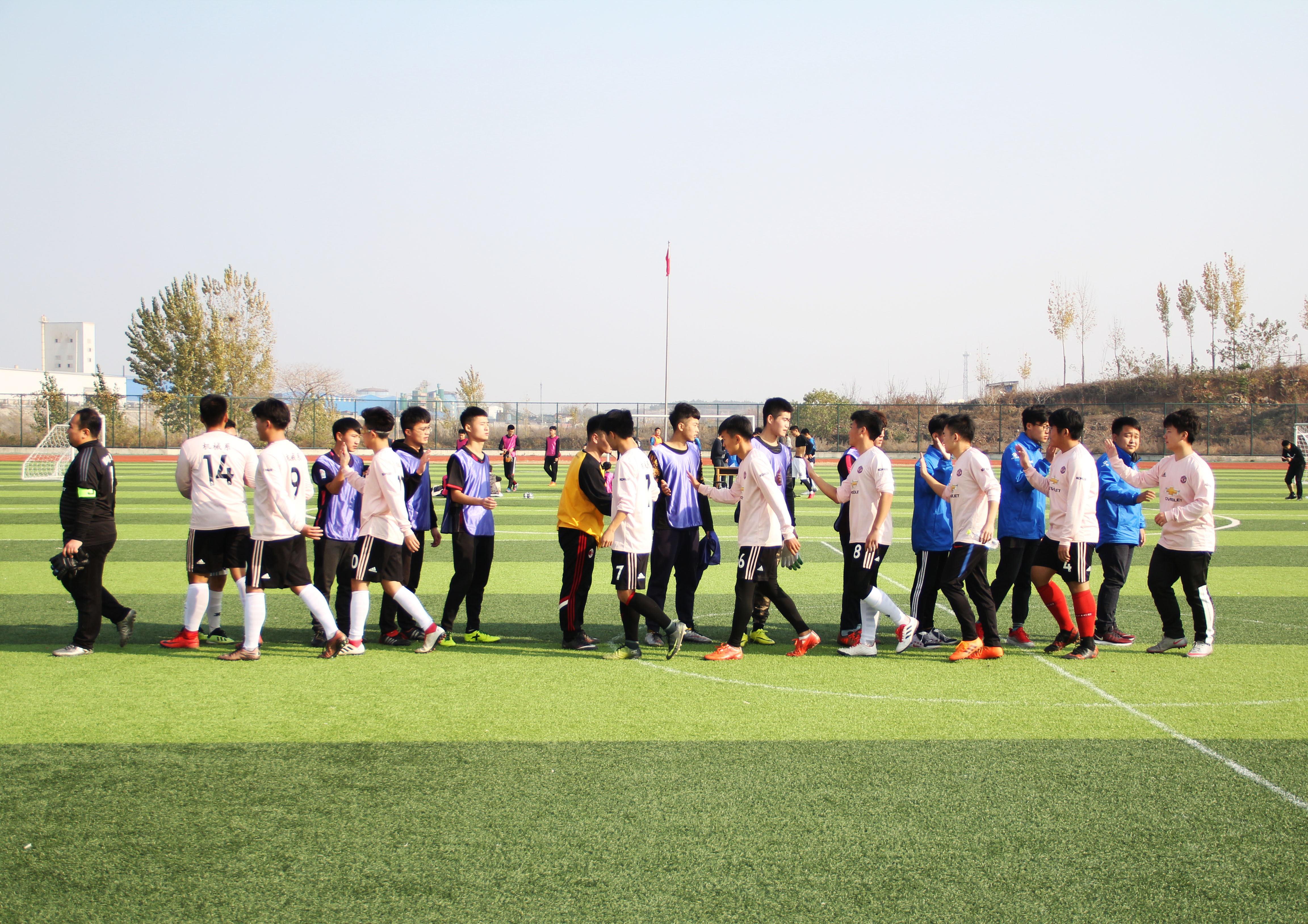 比賽開始,雙方都不敢大舉壓上,都在試探性進攻,以便摸清對方的攻防套路。兩邊你來我往,互有攻防,踢的甚是激烈。臨近中場休息時,機械隊門將發出門球,越過中場線,66號球員接到球后冷靜應對,與隊友默契配合殺入內線,盡管對方防守非常到位,但還是被機械隊球員攻破防線拔腳怒射,正入球門,拿下至關重要的一分。在下半場雙方調整戰術,生物隊球員背水一戰,不斷為自己的隊員創造射門的機會。但機械隊球員防守更上一層,下半場雙方互交白卷。最后機械隊以1:0的成績取得本場比賽的勝利。