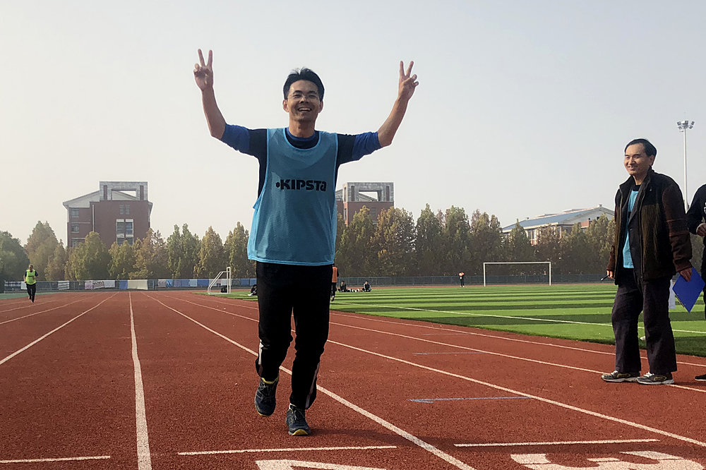 惠風和暢,碧空如洗。11月13日,全院300多名教職員工身穿亮麗的跑步馬甲,精神抖擻地齊聚校園操場,期待一場健康與活力的運動盛宴。隨著清脆的發令槍響,參賽隊伍浩浩蕩蕩從賽道起點出發,場面蔚為壯觀。接下來,選手們將環繞校園兩圈,整個賽程接近4公里,這是對毅力與體力的極大考驗。