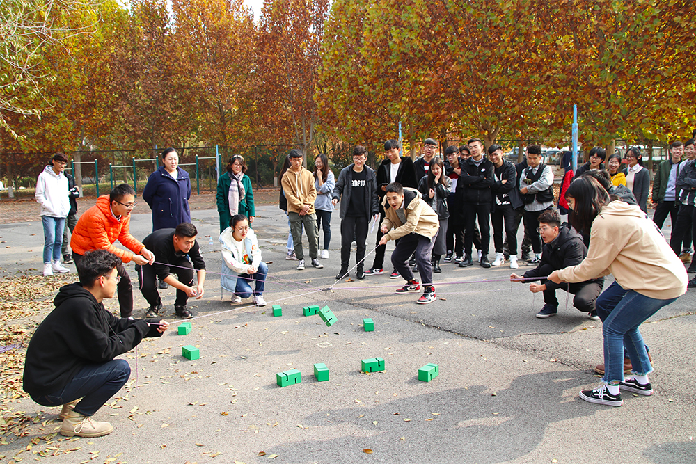 本次團建活動將學生干部分為五組,每組需要在規定的時間內通過團隊配合的方式,使用吊鉤將方塔搭起,根據方塔整齊度和消耗時間決定勝負。活動期間,各組成員全神貫注,小心翼翼地控制手中的繩子和所系方塊,經過各組成員的不懈努力,方塔也逐漸成型。最終,三組與五組學生干部隊伍憑借出色的平衡能力與完美的配合贏得本次團建活動。