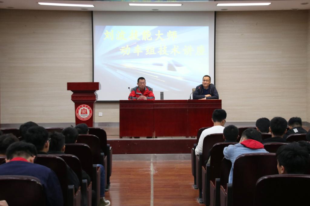 11月5日,鐵道車輛與機械工程系舉辦“中國高速動車組運用與檢修技術”專題講座,邀請到“劉波技能大師工作室”主持人劉波擔任主講。系主任龐繼偉主持活動,鐵道車輛與機械工程系、鐵道機車與機電裝備系領導和老師,鐵道車輛、動車組檢修技術專業部分學生聆聽講座。