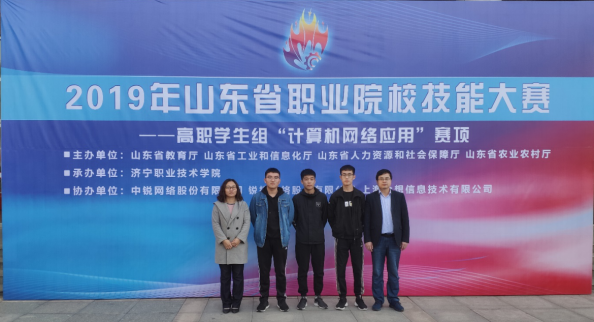 11月13日至14日,2019年山東省職業院校技能大賽“計算機網絡應用”賽項(高職組)比賽在濟寧舉行。我院計算機網絡技術專業學生朱曉磊、李振東、劉浩組成的參賽隊在李憲偉、平寒兩位老師的指導下,與來自全省37所高職院校的111名參賽選手同場競技。經過激烈角逐,我院代表隊最終取得第1名的優異成績。