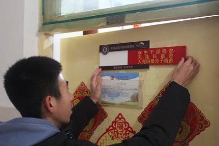 這些宿舍里的學生干部在宿舍文化建設中發揮積極作用,帶領舍友一起用心營造良好宿舍環境,打造“溫馨家庭”,為同學們樹立了榜樣。通過貼示優秀宿舍標識活動,帶動各個宿舍學優秀、追先進的積極性,共同營造適宜溫馨的宿舍環境。
