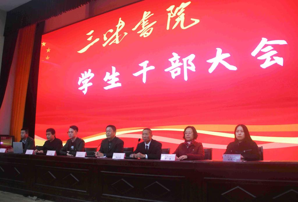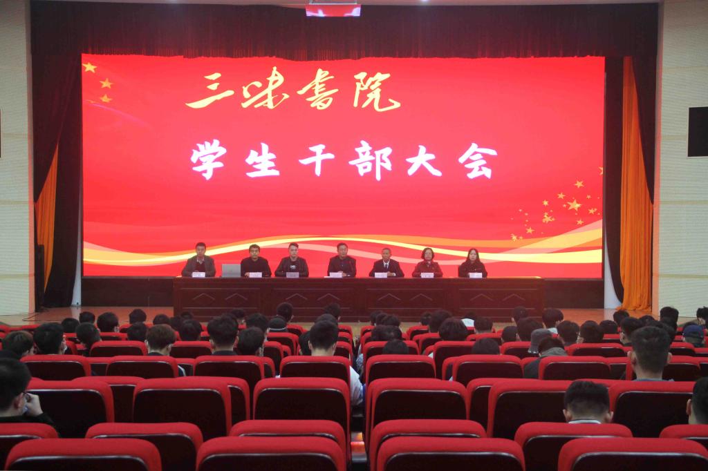 為進一步加強學生干部隊伍建設,培養他們在工作中所必須的素質與能力,激發隊伍的工作熱情,10月28日,三味書院于圖書行政樓西報告廳召開學生干部大會。會議由綜合辦主任兼團總支書記王成琳主持,書院院長呂立寧、副院長楊廷富及書院全體輔導員老師參加了會議。