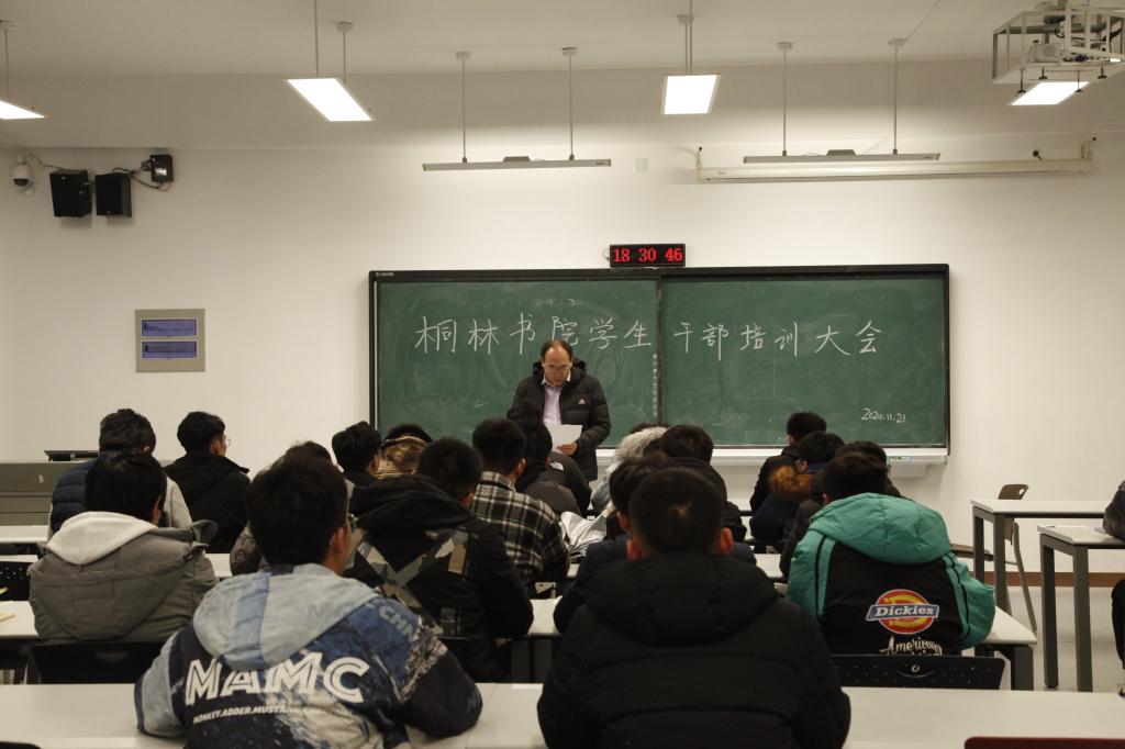 為增強學生干部的履職盡責能力,提升學生干部的責任擔當。11月21日,桐林書院舉辦了學生干部培訓大會,書院副院長李亞飛以“如何成為一名優秀的學生干部”為題做了報告。桐林書院全體學生干部參加培訓。