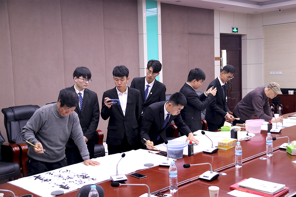 為營造文化育人的濃厚氛圍,提高學生的文化素養。12月12日上午,東嶺書院在解放路校區一樓會議室舉辦了“字里千秋”師生書畫交流會。退休教師彭瑋、張世體、修井舜受邀與書院師生代表進行書畫交流,離退休工作處處長徐向嶺,東嶺書院院長湯華東、副院長周杰出席此次活動。
