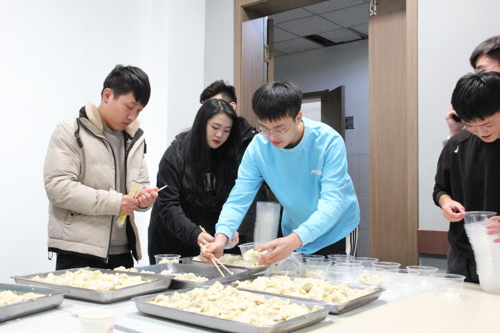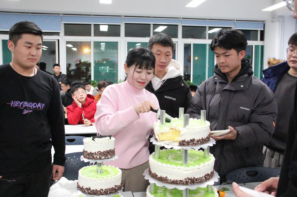活動現場氛圍濃烈,十佳歌手演唱的多首動人的歌曲、蒲公英志愿者協會成員精心準備的多個節目以及一碗碗熱騰騰的水餃,無不代表著協會對同學們的關心。遠在他鄉,也能感受到家的溫暖。最后,氣氛在切開蛋糕的那一瞬間到達高潮,在場學生齊聲高唱。