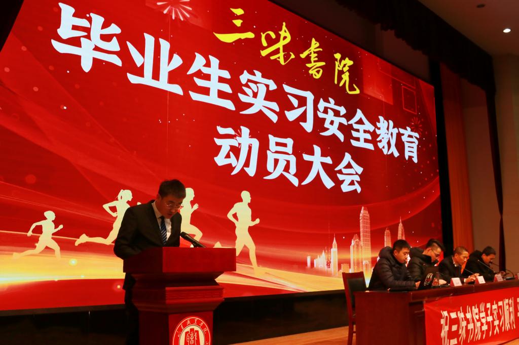 為增強2021屆畢業生在實習中的紀律意識、安全防范意識、維權意識等,確保實習期間的人身、財產、食品、交通安全。12月29日,三味書院于圖書行政樓西報告廳召開畢業生實習安全教育動員大會。大會由三味書院輔導員李明坤主持,書院副院長楊廷富及全體輔導員出席活動。