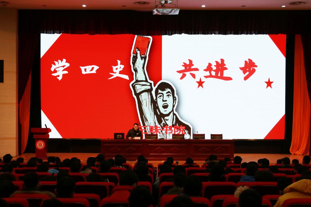 12月30日,書院黨支部組織委員王成琳講授“學四史 共進步”黨課。王成琳從新時代為什么要學“四史”、新時代“四史”學什么、新時代“四史”怎么學這幾個方面講解,并用生動的語言和精彩的故事講述了黨成立初期的歷史和先進人物事跡,大家紛紛圍繞四史展開心得交流和集中學習,感悟良多、收獲滿滿。