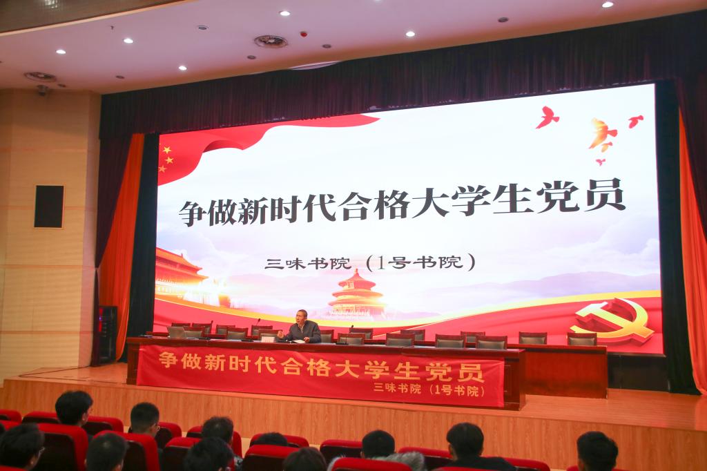 12月28日,副院長楊廷富講授“爭做新時代合格大學生黨員”黨課。楊廷富結合自身經歷與時事熱點,講述了新時代對黨員的四個要求:一是能夠不斷地學習與進步;二是能夠立足現實,展望未來;三是能夠正確處理個人與集體的關系;四是能夠做到自我與自律。他表示,黨的隊伍好比是一個大熔爐,希望同學們將來也能在黨這個有組織有紀律的大家庭中,錘煉黨性、砥礪品格。