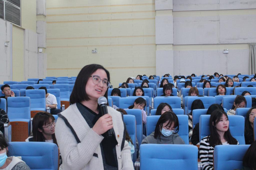 在分享交流環節,同學們積極提問,薛老師對個人照片未經允許被別人使用是否侵權、分手后是否可以要回贈予的禮物等大學生常見的生活情感方面的問題一一作出解答,語言幽默風趣,具有很強的針對性和實用性。