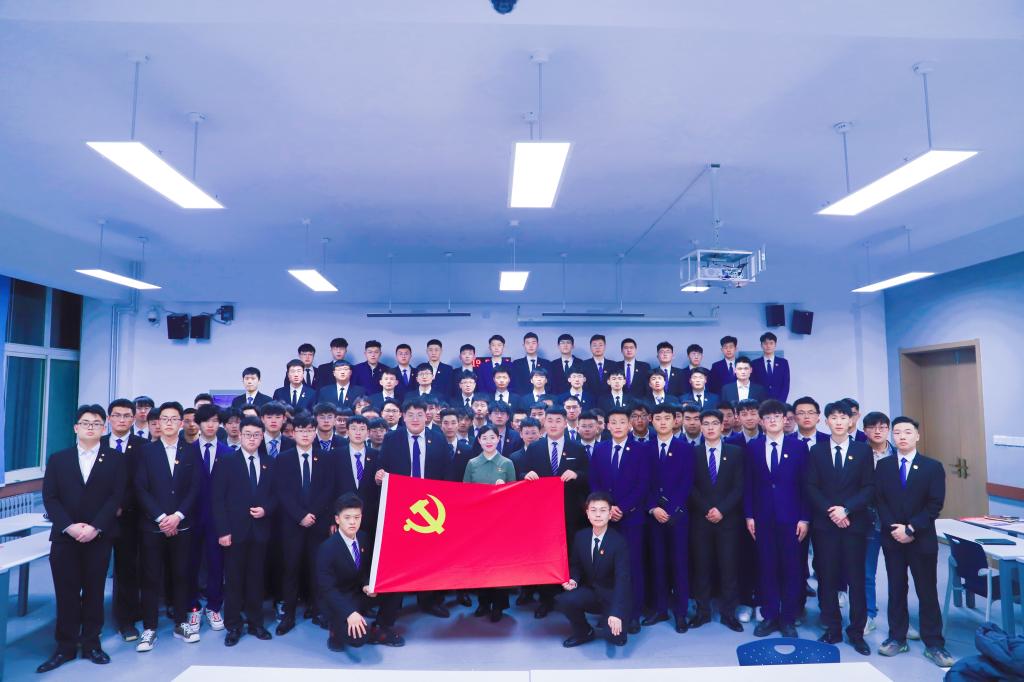 a一級黃色片:會后,師生在黨旗下合影留念。