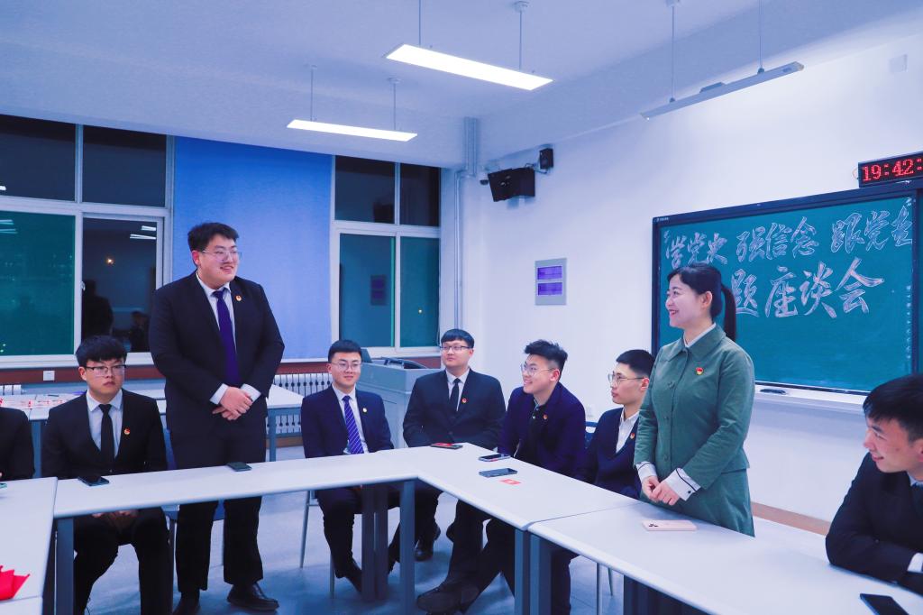 座談會伊始,薛高芳指出,今年將迎來中國共產黨建黨100周年,從“小小紅船”到“巍巍巨輪”,百年黨史熠熠激蕩,同學們作為新時代的入黨積極分子,更應深入了解黨史,結合自身情況,思考如何“青春心向黨,建功新時代”。