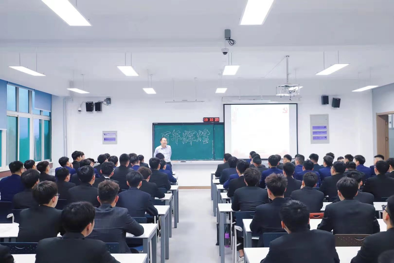 李亞飛圍繞“百年輝煌”這一時代主線,深入淺出,講述了中國共產黨通過新民主主義革命,社會主義革命和建設、改革開放和社會主義現代化建設新時期,實現了中國從站起來到富起來、強起來的偉大歷程,為在場的同學上了精彩一課。