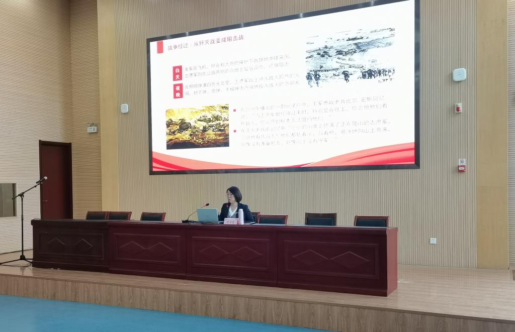 展春蕾介紹了71年前抗美援朝的有關歷史,并從長津湖戰役的“作戰背景、戰力對比、戰爭經過、英雄長歌、戰后反思"五個方面回顧了革命先輩的血淚奮斗史,同時分析了當下世界形勢。要求同學們深刻認識中國共產黨領導和團結全國各族人民進行的艱苦卓絕的奮斗歷程,堅定心中的理想信念,在實踐中磨練自己,為祖國在打贏新材料、基因工程、人工智能、新能源、量子通訊的科技之戰中貢獻自己的青春力量。啟示當下青年緬懷革命先烈,汲取奮進力量。