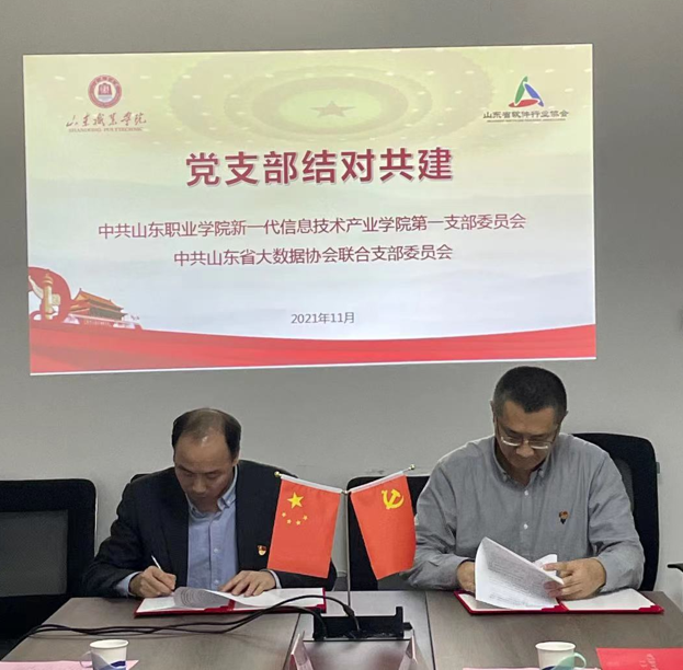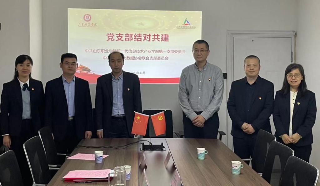 為進一步加強黨建工作,以黨建引領業務發展,更好助力技術技能人才培養,11月19日,新一代信息技術產業學院第一黨支部到山東省軟件行業協會,與山東省大數據協會聯合支部共同開展支部聯創共建活動。山東省大數據協會聯合支部書記盧欽剛、山東省軟件行業協會秘書長劉燦軍、產教聯盟培訓部主任岑文嬌,新一代信息技術產業學院黨總支書記兼院長楊文虎,支部成員姜海嵐、金月光、李佳參加了本次活動。