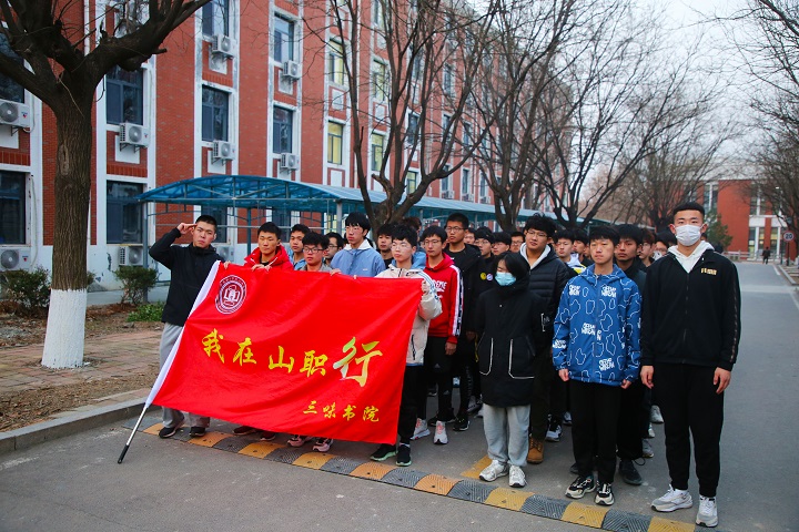早上六點半,150余名新生迎著寒風準時在2號公寓樓前集合,在學生代表介紹了“一二?九”運動的由來及意義后,環校跑活動正式開始。在隨風飄揚的院旗下,三味學子個個神采奕奕、英姿颯爽,行進的隊伍以五縱列隊排開,腳步鏗鏘有力,他們盡情享受著清晨的陽光和運動的快感,全然忘記天氣的寒冷,胸中唯有緬懷革命先輩、弘揚129愛國精神的一腔熱血。