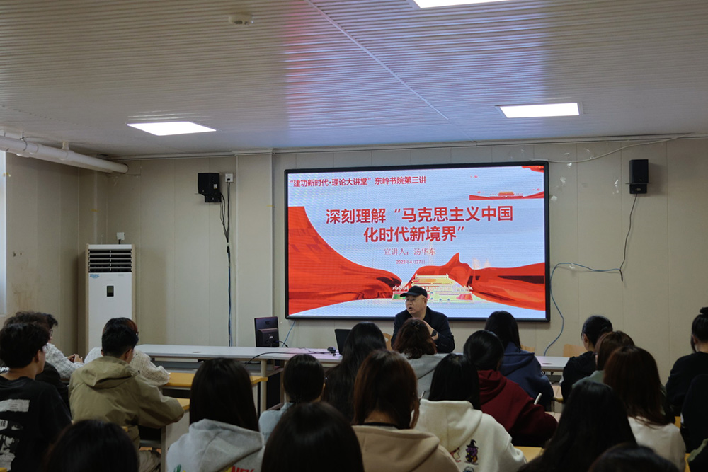 4月26日,東嶺書院“建功新時代·理論大講堂”專題宣講活動第三講在書院右苑一樓黨團活動室開講,書院黨總支書記兼院長湯華東進行宣講,東嶺書院部分老師和學生代表參加。