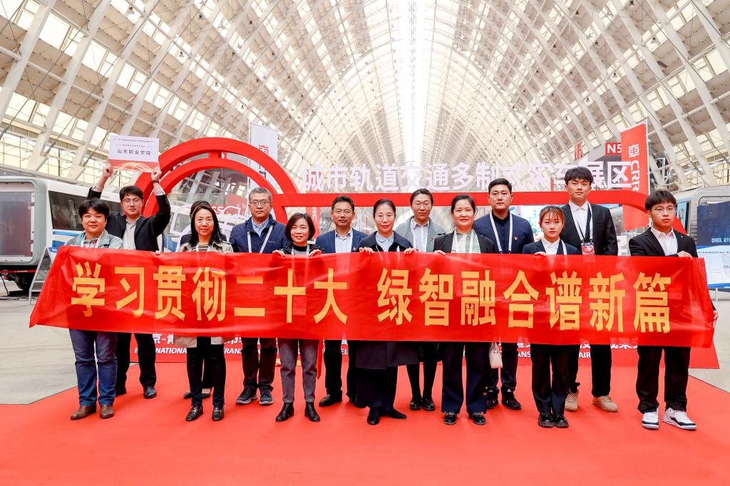 北京-青島國際城市軌道交通高峰論壇和“首屆中國城市軌道交通高新技術成果交易會”在山東青島中鐵博覽城同期舉辦期間,4月28日,城市軌道學院黨總支在博覽會現場舉行了“學習貫徹二十大,綠智融合譜新篇”主題黨日活動。教師黨員及學生代表14人參加。