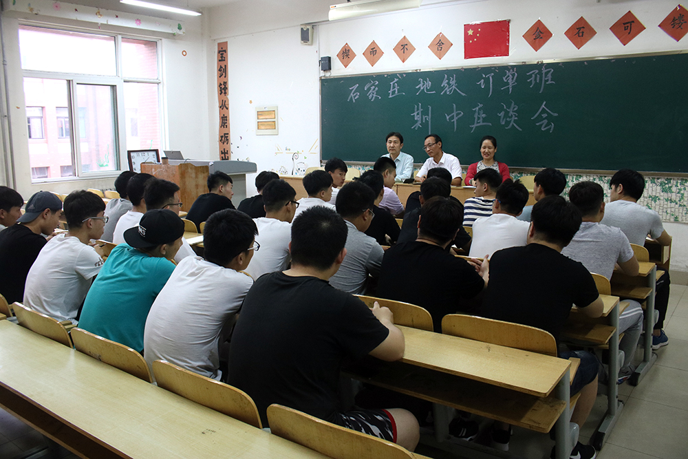 為深入了解學生學習狀況,及時解決學生學習中遇到的問題,5月17日,城市軌道交通系舉行石家莊地鐵訂單班期中座談會。系黨總支書記郭忠相、主任王紹軍、副主任張風琴出席會議。