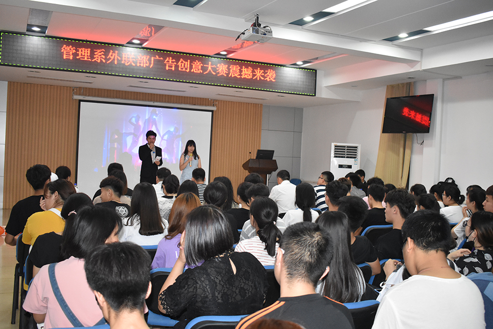 參賽團隊根據贊助商的需求,設計相關產品的創意廣告,通過自己巧妙的構思和精心設計的作品來引起學生們的關注與需求。參賽人員或自主編排情景,將廣告詞融入其中;或改編小品相聲,加入自己設計的元素來突顯主題。其中《甄嬛后傳》以改編小品為始,加入設計的搞笑元素與廣告創意,繪聲繪色的表演引來了觀眾們的熱烈掌聲;《身邊的明輝》以校園生活為背景,通過一幕幕日常生活對話來誘導廣告詞的出場,讓同學們在不知不覺中感受到了產品的實用與價值。每一個廣告都傾注了參賽團隊們的努力和汗水,每一個作品都給觀眾們帶來了歡笑,進而刺激了學生的消費心理。