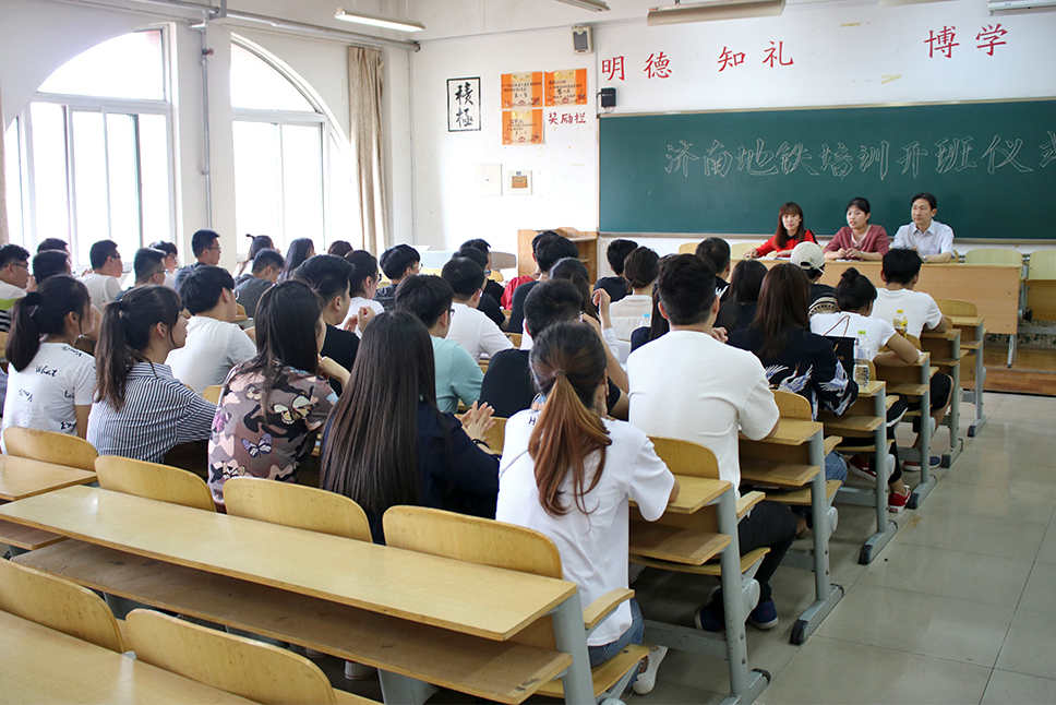 城市軌道交通系作為濟南軌道交通的合作單位,承擔2015級濟南地鐵培訓班為期50天的培訓任務。5月14日,城市軌道交通系舉行濟南地鐵培訓開班儀式。公司綜合管理部吳文靜、客運部趙倩,城市軌道交通系主任王紹軍出席會議。