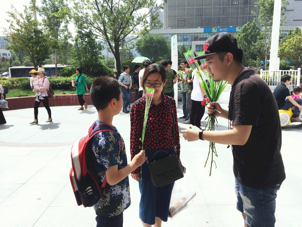 活動中,有的同學手持愛心卡片邀請行人在卡片上寫下對母親的愛,粘貼成感恩墻,并向市民提出倡議,在母親節給媽媽打一個電話、發一個短信、回家吃一次飯等;有的同學手持康乃馨,看到和母親在一起的行人,為孩子遞上一束康乃馨,讓他們親手送給自己的父母,并表達出對母親的愛意;有的同學以路邊街拍的形式,記錄下母親節溫馨感人的一幕。每張卡片都是成長的真實再現,每一聲“媽媽,我愛你”都直擊淚點,孩子們在現場盡情地訴說著平日里羞于對媽媽們表達的濃濃愛意和感激,語言稚嫩但飽含溫情,不少媽媽瞬間紅了眼眶,并落下了幸福的淚水。活動參與者王女士表示,很高興能參加這個活動,并有機會與孩子親密互動,這是一次很有意義的活動,希望有更多的人能夠重視這種節日,重視親人,因愛而感動,為愛而行動。