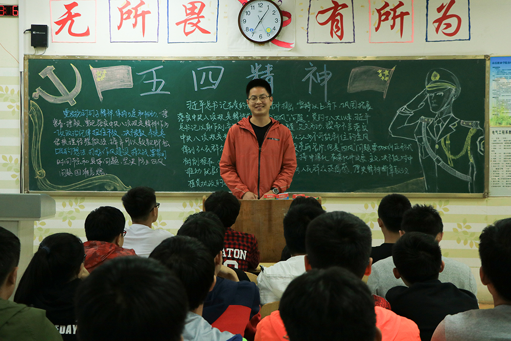 班會上,各班通過觀看視頻、幻燈片等方式學習習近平總書記在5月2日到北京大學考察中和在與北大師生座談時發表的重要講話精神,了解了五四運動到中國特色社會主義進入新時代的偉大飛躍、習近平總書記對新時代青年提出的要求以及新時代青年的學習榜樣宋璽的事跡等內容。同學們紛紛表示,幸福是奮斗出來的,只有奮斗的人生才是幸福的人生。我們要牢記習近平總書記的諄諄教誨與殷切期盼,堅定信仰、砥礪品德,求真學問、練真本領,知行合一、苦干實干, 珍惜時光、勤奮學習,努力成長為有理想、有本領、有擔當的社會主義建設者和接班人,為全面建成小康社會、全面建設社會主義現代化強國而努力奮斗,為實現中華民族偉大復興中國夢貢獻智慧和力量。