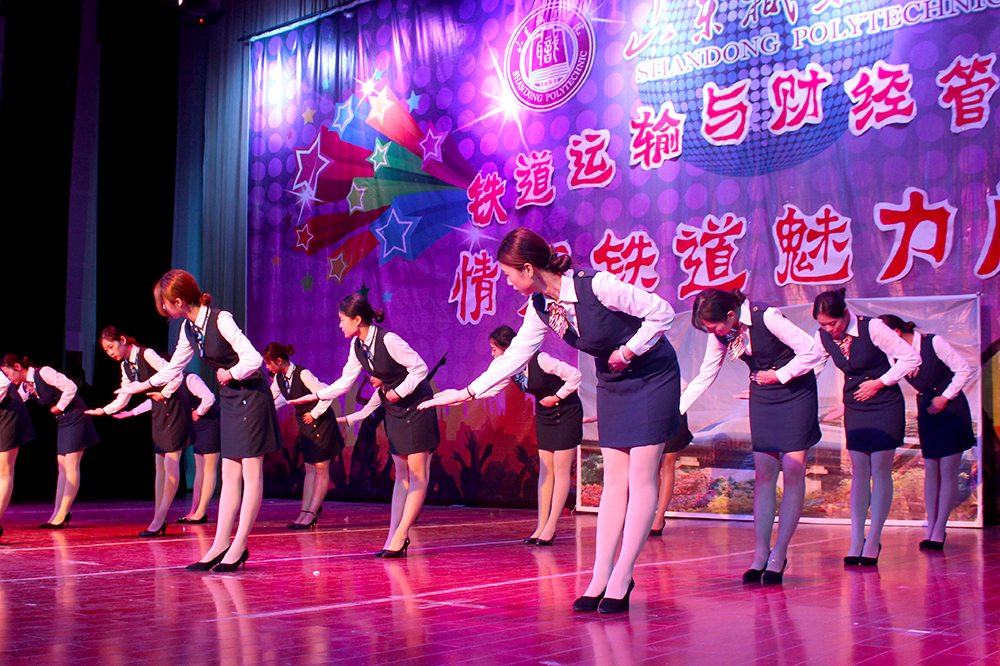 鐵路風采展以一段熱烈的開場舞拉開序幕,鮮艷的禮服與優美的舞姿帶動起了全場氣氛。《車站故事》和《地鐵軼事》分別講述了發生在火車站及地鐵站里的故事,通過站務工作人員與乘客之間的幽默故事展示了站務工作人員的敬業精神,贏得了觀眾們的熱烈掌聲。《接發列車》通過表演者指揮列車的信號旗為觀眾們展示了車站助理值班員的崗位技能;歌曲《坐上火車去拉薩》,歌聲甜美悠揚,伴舞們隨節奏翩翩起舞,極具觀賞性;禮儀風采通過“服務標準展示”向大家呈現了乘務員們服務旅客、情系旅客的精神面貌。張錦師與楊冀老師共同進行的一段禮儀展示更是將本次活動推向高潮,最后的一聲“復興號歡迎您!”向觀眾傳達了復興號動車組列車的風采,表達了對祖國繁榮昌盛的美好祝愿。由大二學生表演的《那一刻》講述了在一條條鐵路線中的聚散離別,當從遠方歸來,兄弟知道母親生病時毫無猶豫的伸出援手相助,心中一暖,情侶分手后在站臺回憶著過去發生的一幕幕,感人至深。最后,本次風采展示活動在合唱《光陰的故事》中完美落幕。