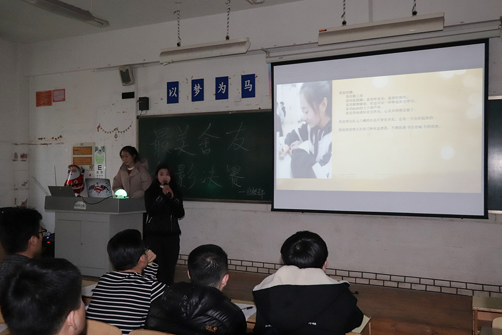“我是8123宿舍代表,我的舍友們羞澀又不失開放,內斂又不失陽光,與他們的在一起的點點滴滴將會是我大學生活中最美好的回憶。”“這張合影是我們宿舍第一次出去聚會在餐廳門口照的,那時剛軍訓完的我們是真黑啊,美顏也不好使呢。”一張張照片,一句句話語,各個宿舍代表用樸實、真誠的語言訴說著自己與舍友的精彩瞬間,講述著照片背后的動人故事。經過幾輪精彩講解,8123宿舍獲得此次最美舍友合影比賽第一名,9120宿舍、9201宿舍分獲二、三名。
