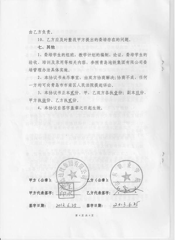 2012級青島地鐵集團有限公司(青島地鐵)訂單班