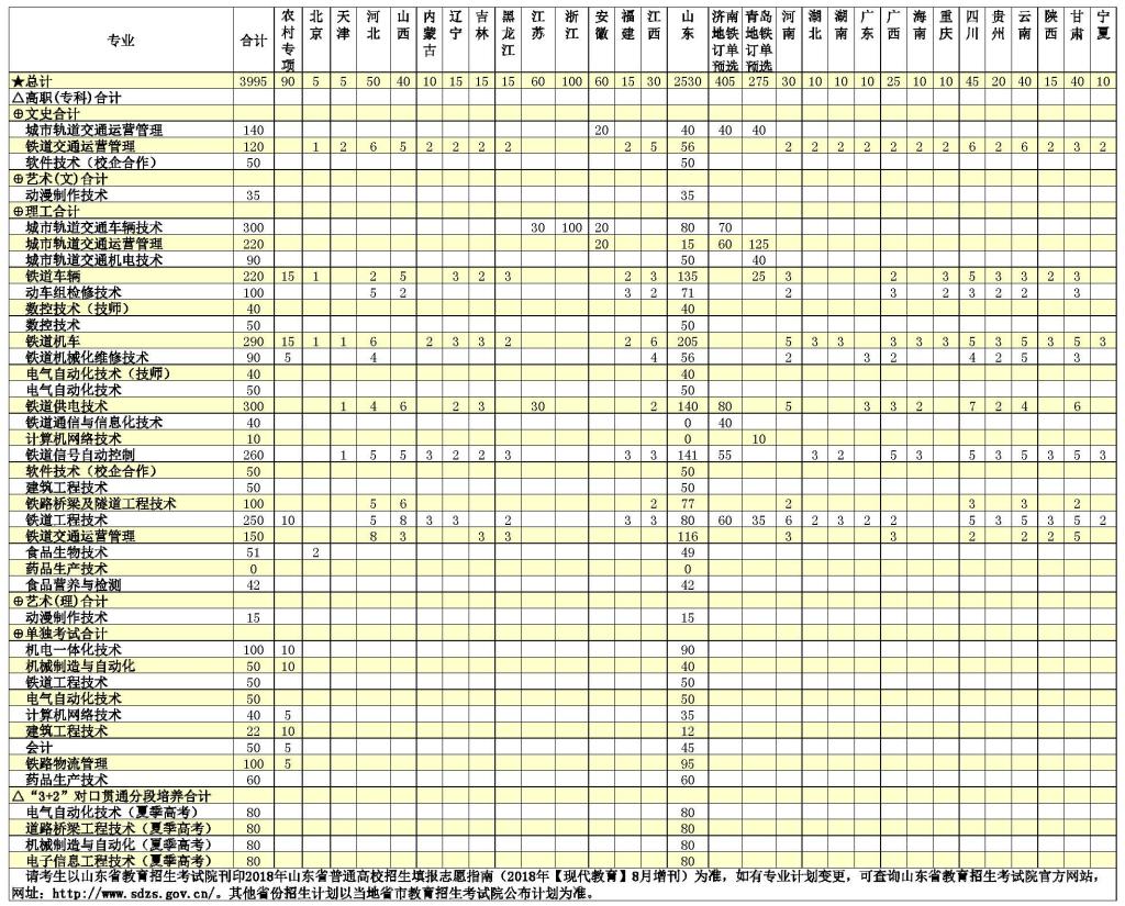 山東職業學院2018年招生計劃