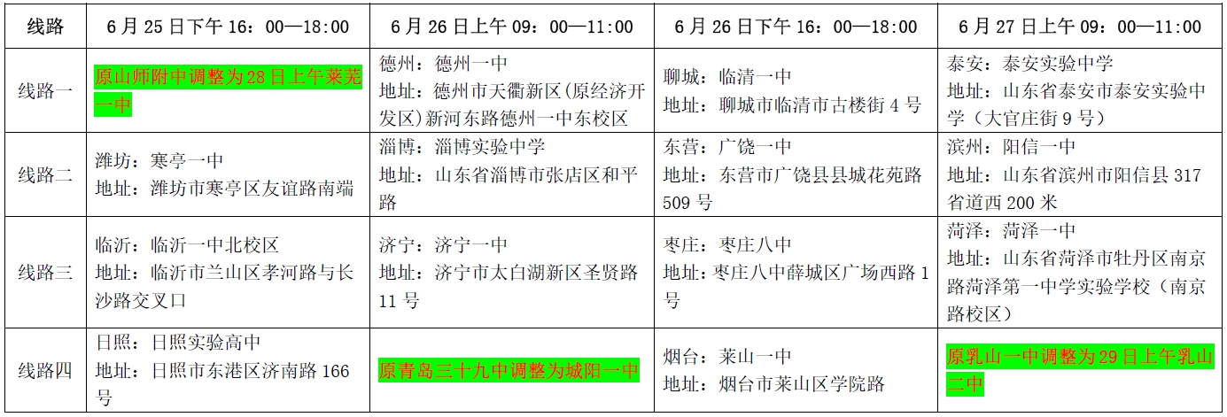 *線路一原定25日下午舉辦的山師附中場,調整為28日上午在萊蕪一中舉辦。
